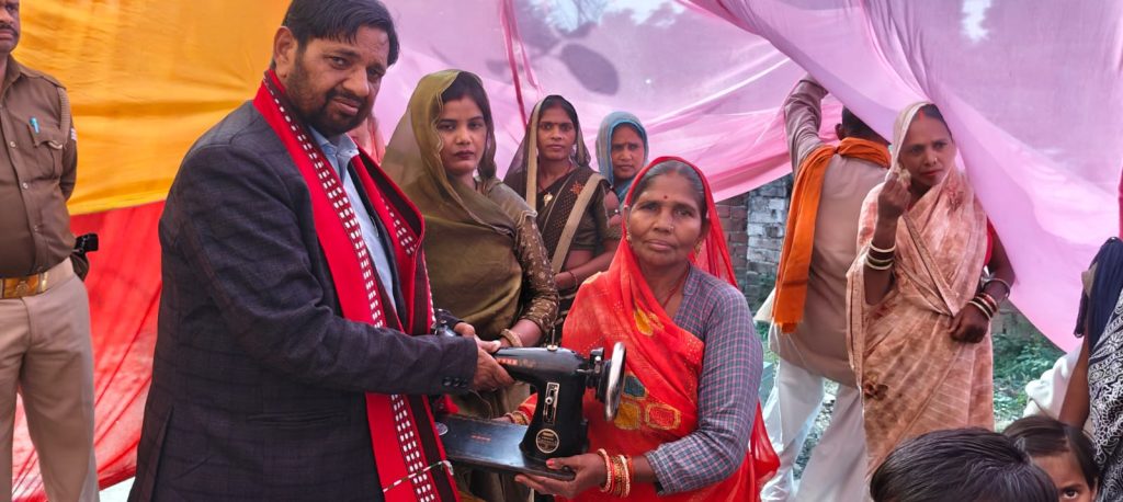 मलिहाबाद। अब हम घर बैठे सिलाई करके अपना और बच्चों का पेट पाल सकेंगे। यह खुशी की चमक थी टिकैतगंज गांव की उन दर्जनभर महिलाओं की आंखों में जिन्हें मंगलवार को पूर्व केंद्रीय राज्यमंत्री कौशल किशोर ने अपने हाथों से नई सिलाई मशीनें सौंपीं। ग्राम प्रधान श्रीमती निशा रावत के नेतृत्व में आयोजित इस छोटे से कार्यक्रम में कौशल किशोर ने एक साथ दो बड़े संदेश दे दिए। एक तरफ महिलाओं को आर्थिक रूप से मजबूत बनाने का संकल्प, दूसरी तरफ पूरे गांव को नशे से दूर रखने की शपथ। कार्यक्रम में पहुंचते ही पूर्व मंत्री ने सबसे पहले स्वयं सहायता समूह की महिलाओं को सिलाई मशीन और मजबूत लोहे का बॉक्स भेंट किया। इसके बाद प्राथमिक विद्यालय टिकैतगंज के बच्चों के चेहरों पर मुस्कान बिखेरते हुए रंग-बिरंगे स्कूल बैग बांटे। बच्चे बैग लेकर इतने खुश हुए कि तुरंत “नशा छोड़ो भारत बढ़ाओ”, “नशा नहीं उम्मीद चाहिए” जैसे नारे लगाने लगे। पूरा पंडाल तालियों और नारों से गूंज उठा।