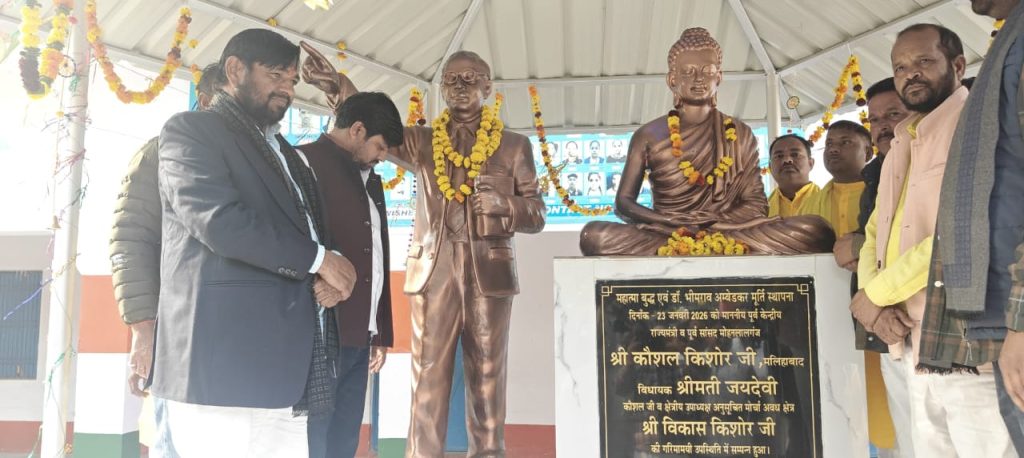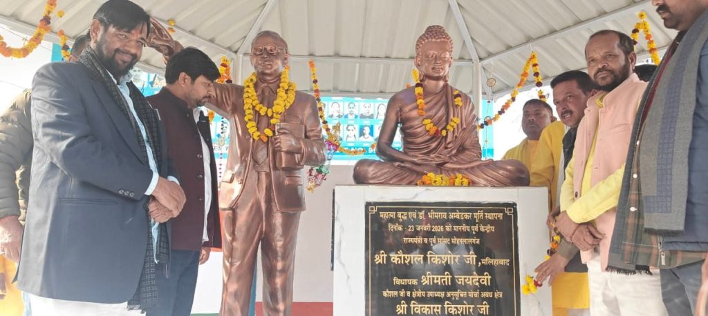 मां सरस्वती, भगवान बुद्ध एवं डॉ. अंबेडकर की प्रतिमाओं का लोकार्पण, कौशल किशोर ने युवाओं को दिया नशा मुक्त भारत का संदेश